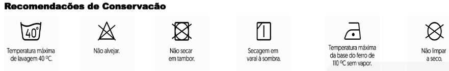 Para maior durabilidade, siga corretamente as instruções de conservação. Lave do avesso e seque à sombra para preservar a cor e o aspecto da peça. Evite fricção excessiva para reduzir a formação de pilling (bolinhas).